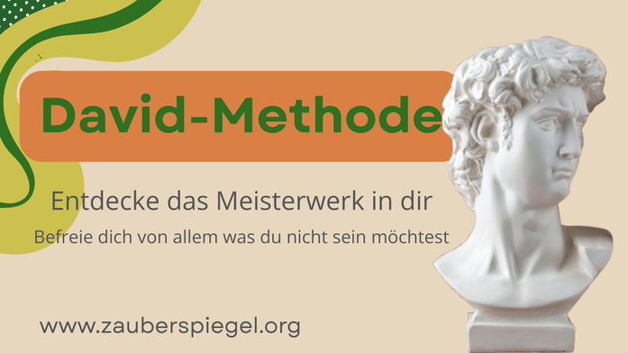 Sie steht auch als Metapher für Entschlossenheit, innere Stärke, Glaube und Selbstvertrauen. Michelangelo sagte über seine Arbeit am David, dass die Figur bereits im Marmorblock vorhanden war und er nur das überflüssige Material entfernt habe, um sie freizulegen. Das ist auch das Prinzip der von mir zusammengestellten `David-Methode´. Es geht nicht darum etwas hinzuzufügen, sondern das entscheidende ist, was man wegnimmt. Gemeint sind Schwachstellen, welche dir in deinem Leben wenig nützlich sind.
